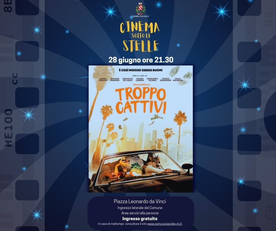 Dal 28 giugno alle ore 21.30 parte la rassegna "Cinema sotto le stelle" con un capolavoro di animazione "Troppo cattivi" regia Pierre Perifel.