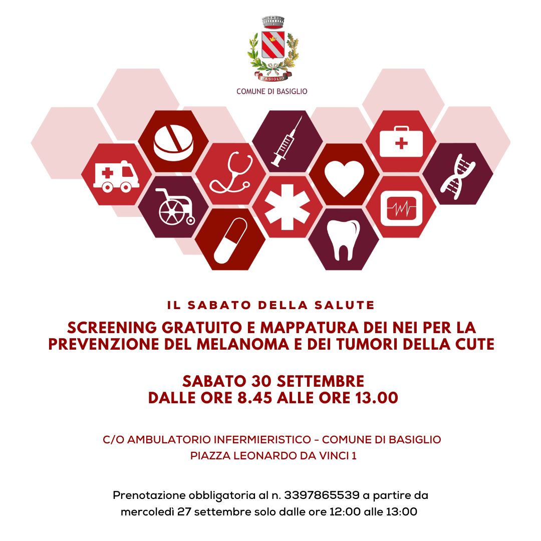 Sabato 30 settembre presso l'ambulatorio infermieristico del Comune di Basiglio, dalle ore 8.45 alle ore 13.00, torna il SABATO DELLA SALUTE, l’iniziativa di screening promossa dell’Amministrazione Comunale per favorire la prevenzione, aumentare la consapevolezza sui temi dalla salute e migliorare così il benessere della popolazione.