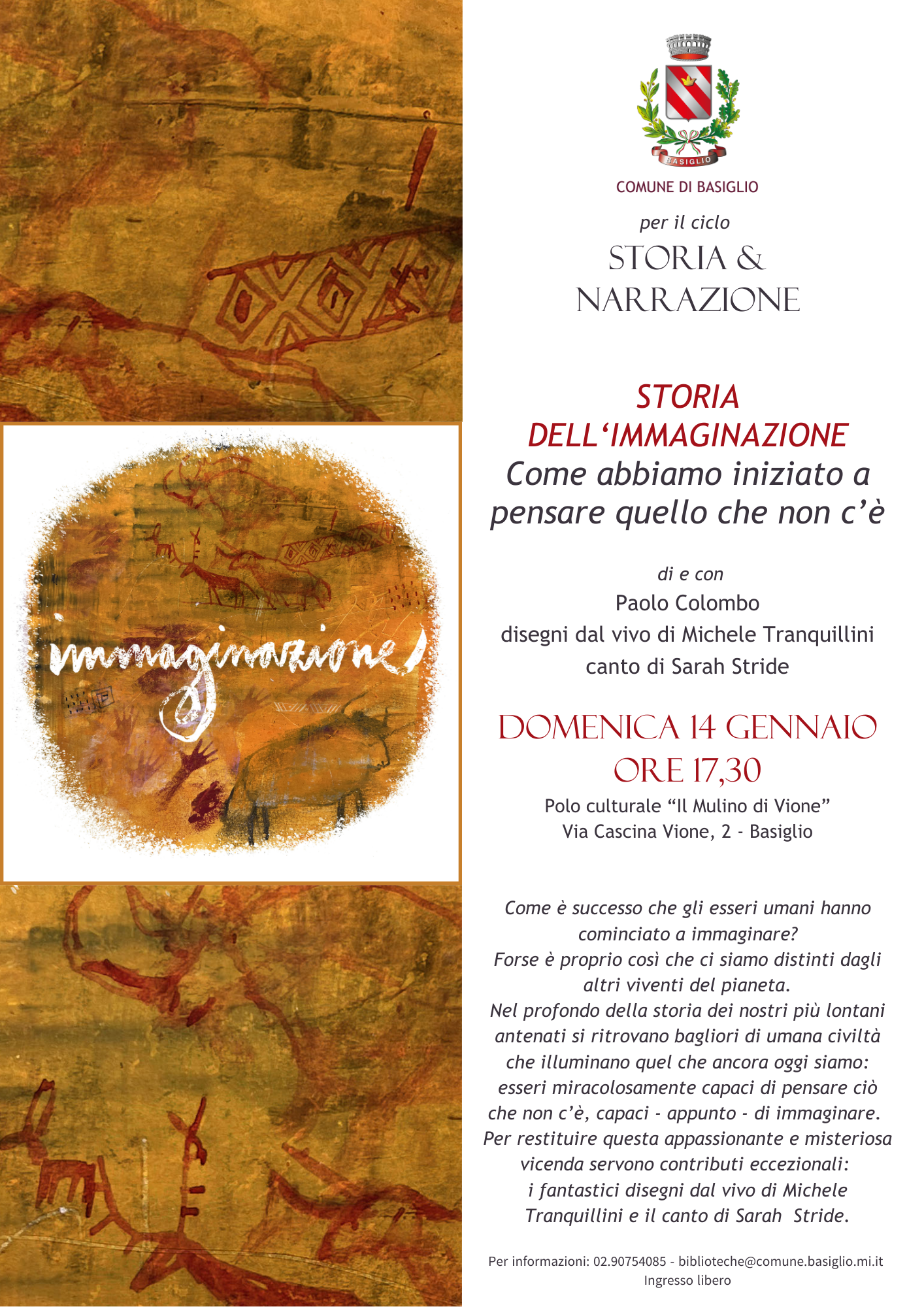 Vi aspettiamo domenica 14 gennaio alle ore 17.30 al Polo culturale “Il Mulino di Vione” in via Cascina Vione, 2 - Basiglio.
