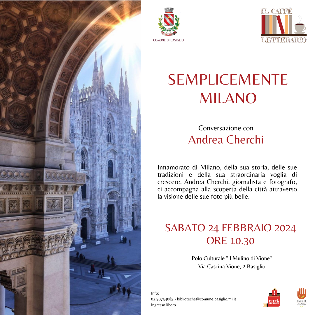 Nell'ambito della rassegna "Il Caffč Letterario", sabato 24 febbraio alle ore 10.30 presso il Polo Culturale "Il Mulino di Vione" appuntamento da non perdere per scoprire Milano attraverso i racconti e le fotografie di Andrea Cherchi.