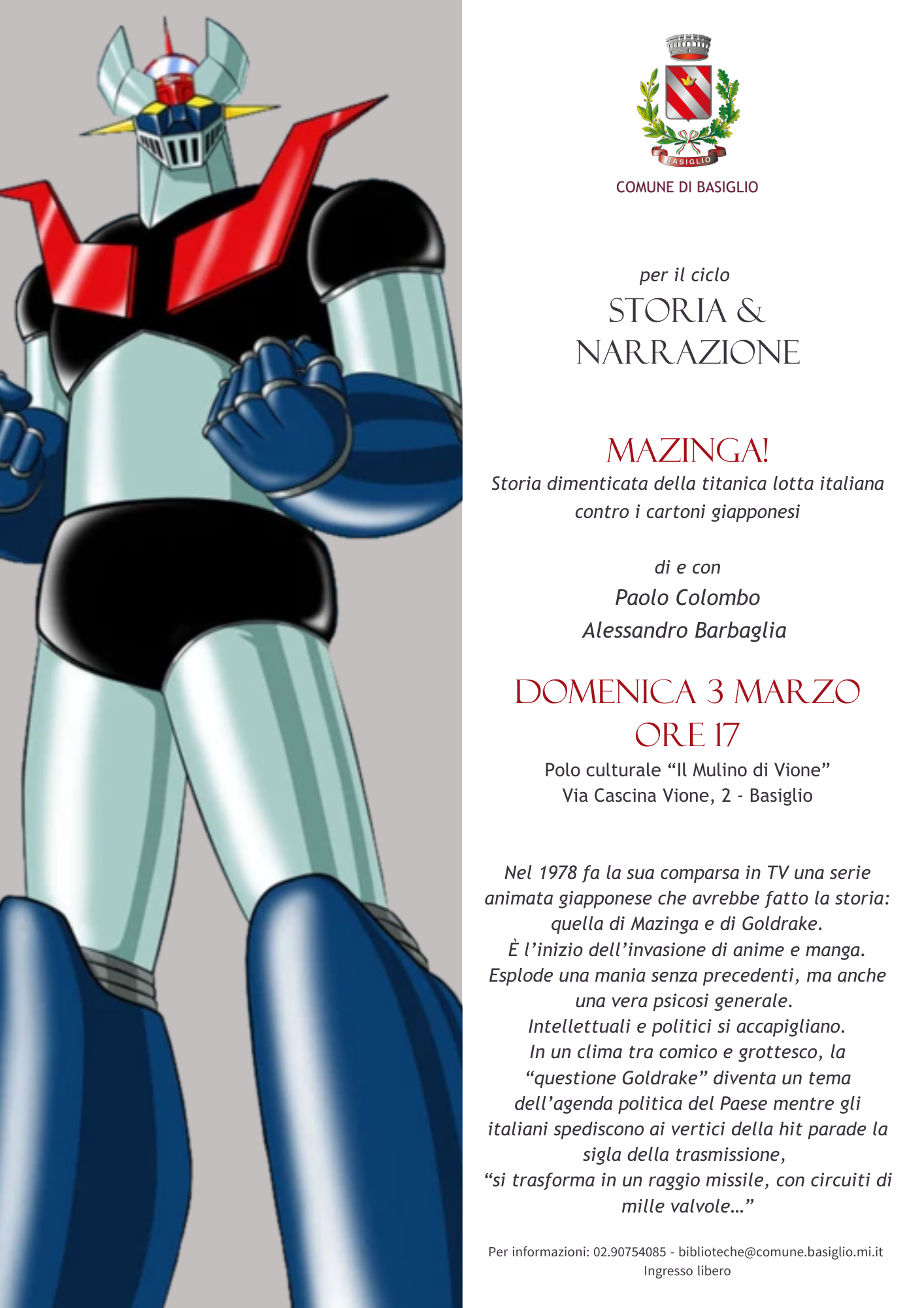 Continua la rassegna "Storia & Narrazione", questa volta con un viaggio nel mondo dei manga con “Mazinga”.
