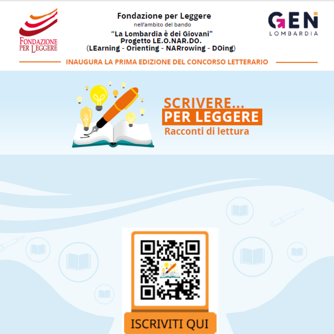 Fondazione per Leggere nell’ambito del bando “La Lombardia è dei Giovani” Progetto LE.O.NAR.DO. (LEarning - Orienting - NARrowing - DOing) inaugura la prima edizione del concorso letterario “Scrivere per leggere. Racconti di lettura”.