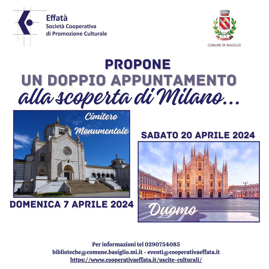 La societą cooperativa di promozione culturale Effatą e la biblioteca "Il Mulino di Vione" organizzano sabato 20 aprile la visita guidata al Duomo di Milano e all'area archeologica.