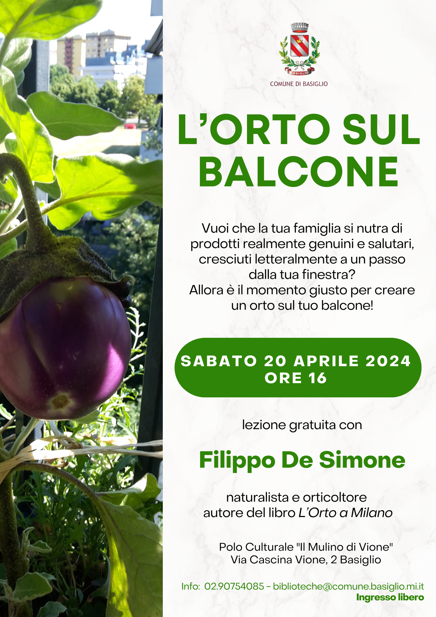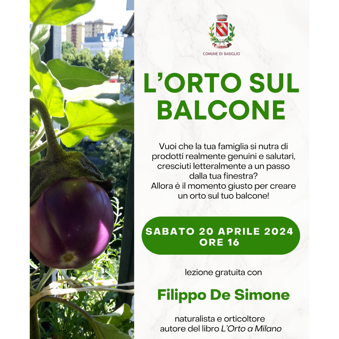 Come trasformare i nostri balconi in un ricco orto? Tutti i segreti per coltivare sul terrazzo svelati uno ad uno da Filippo De Simone, naturalista e orticoltore, autore del libro “L’Orto a Milano” sabato 20 aprile alle ore 16 presso il Polo culturale Il Mulino di Vione.