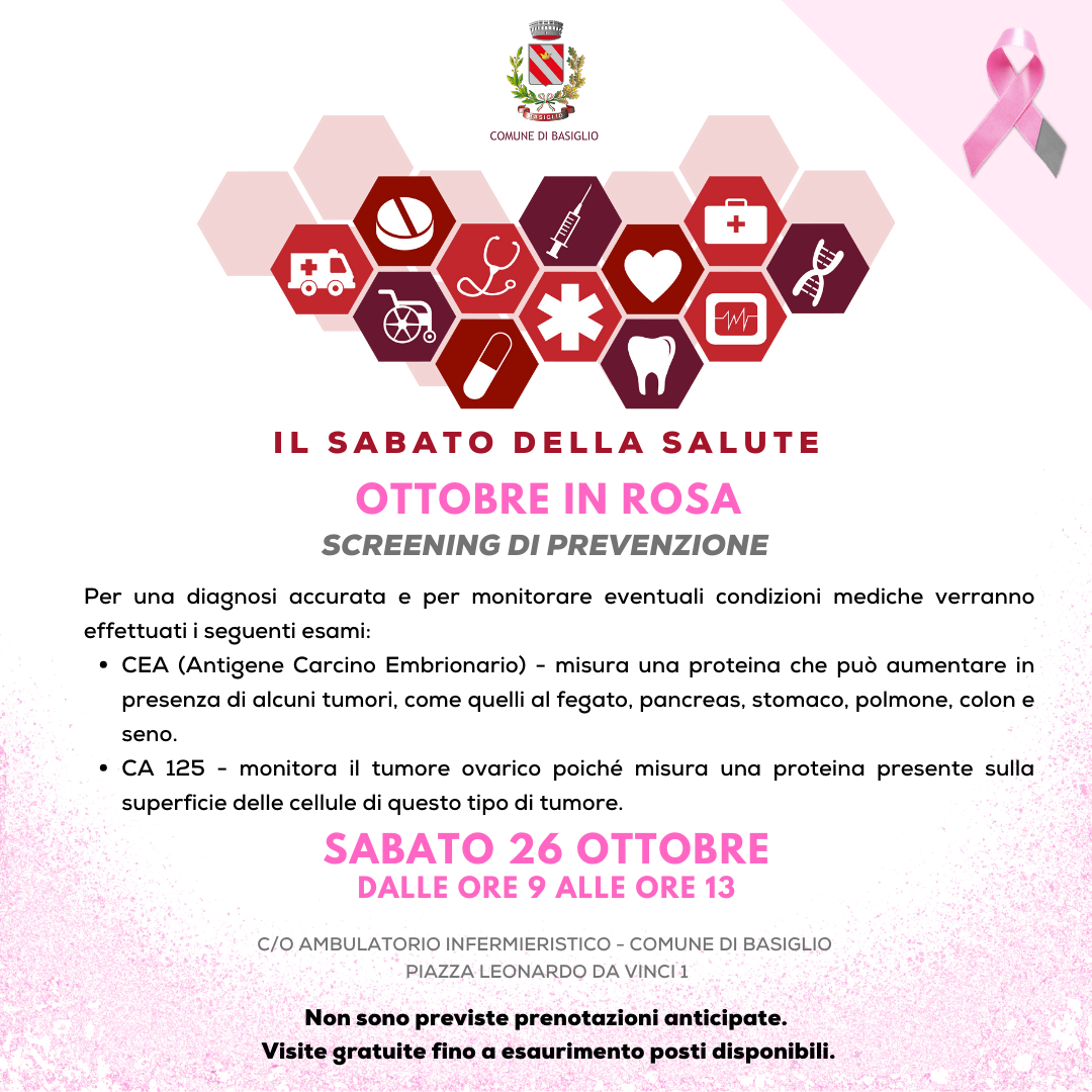 Sabato 26 ottobre dalle ore 9 alle ore 13 presso l’ambulatorio infermieristico del Comune di Basiglio verranno eseguiti due esami utili a monitorare eventuali condizioni mediche: