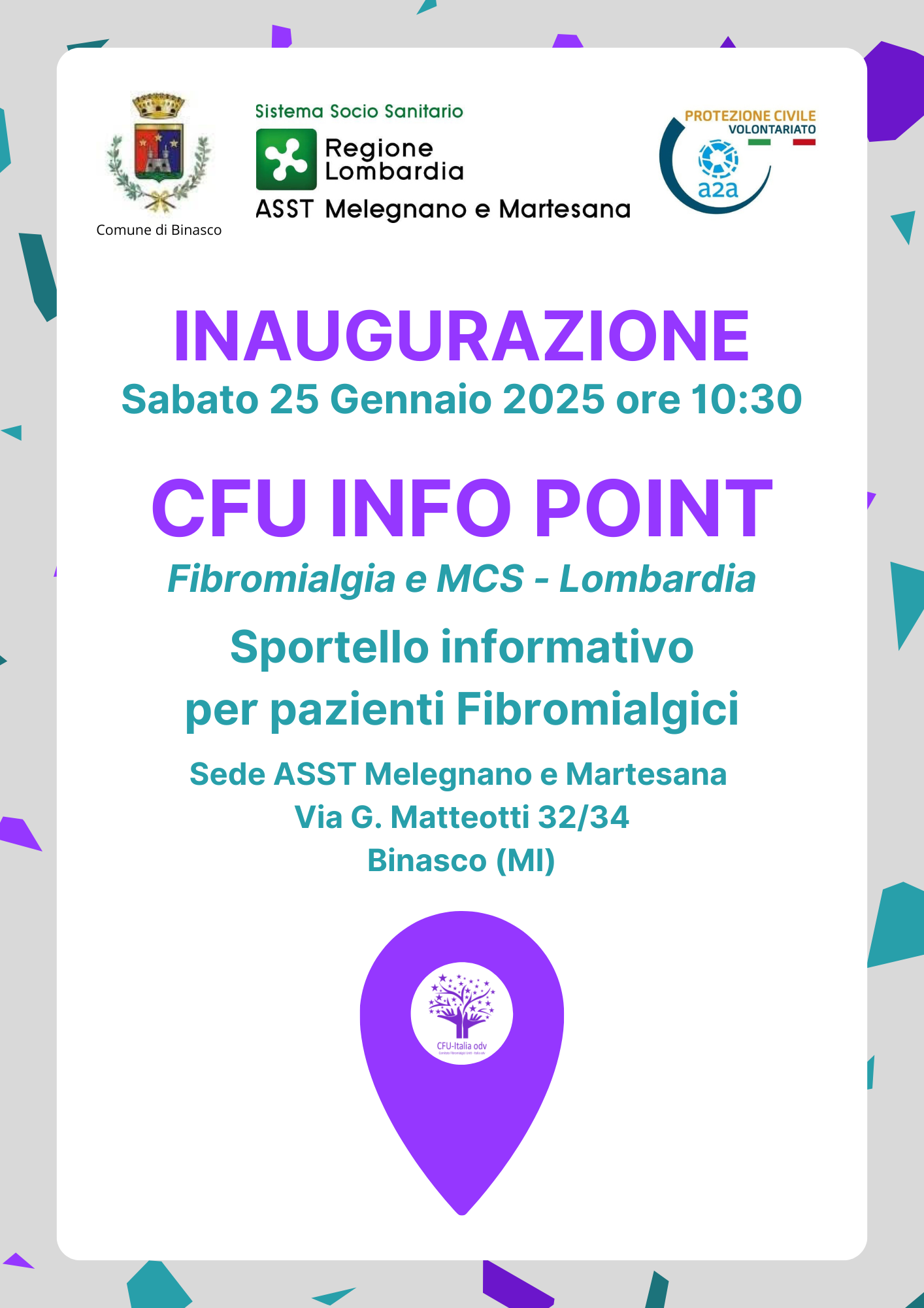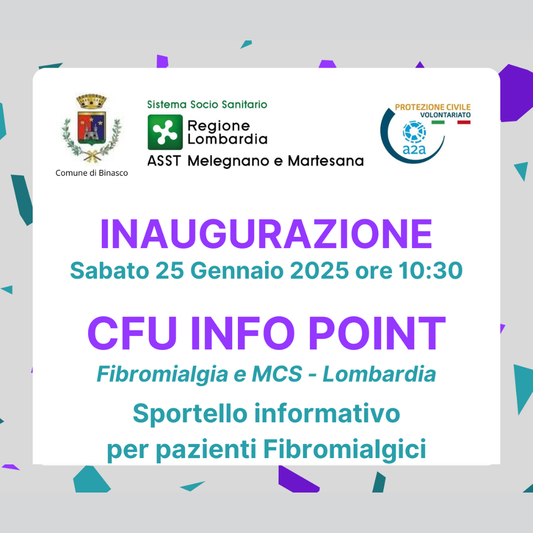 Sabato 25 gennaio alle 10.30 verrà inaugurato il nuovo info point del Comitato Fibromialgici Uniti (CFU).