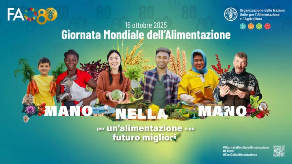 Il 16 ottobre si celebra la Giornata Mondiale dell’Alimentazione, istituita dalla FAO – Organizzazione delle Nazioni Unite per l’Alimentazione e l’Agricoltura, che quest’anno festeggia il suo 80° anniversario.