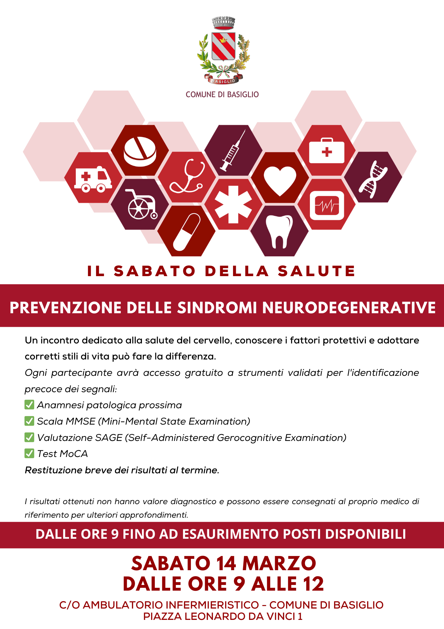 Sabato 14 marzo, dalle 9 alle 12, presso l’ambulatorio infermieristico di piazza Leonardo da Vinci 1, torna l’appuntamento con il Sabato della Salute, l’iniziativa dedicata alla prevenzione e alla promozione del benessere dei cittadini.