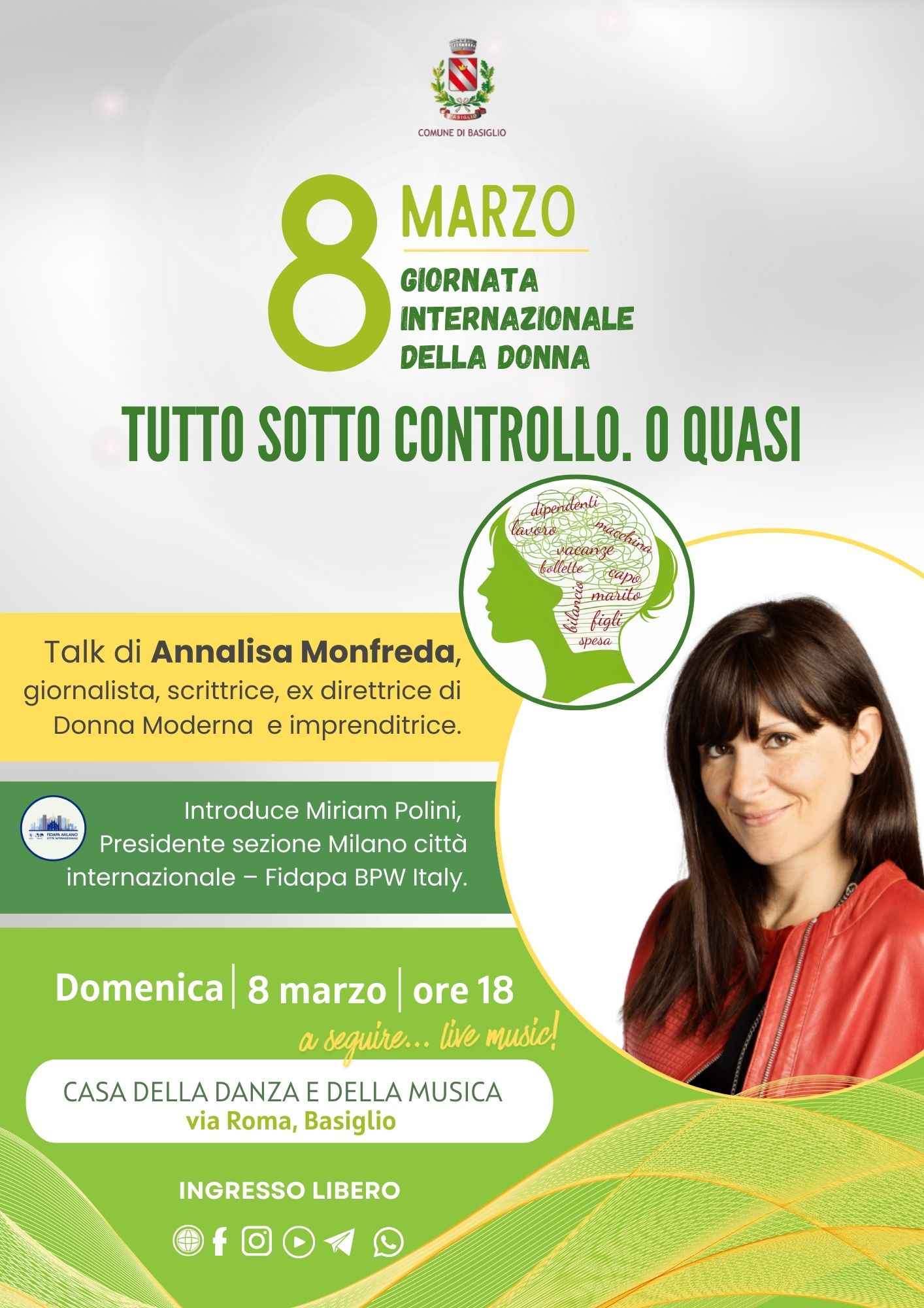 In occasione della Giornata internazionale della donna, domenica 8 marzo alle ore 18, la Casa della Danza e della Musica ospiterà il talk “Tutto sotto controllo. O quasi” con Annalisa Monfreda.