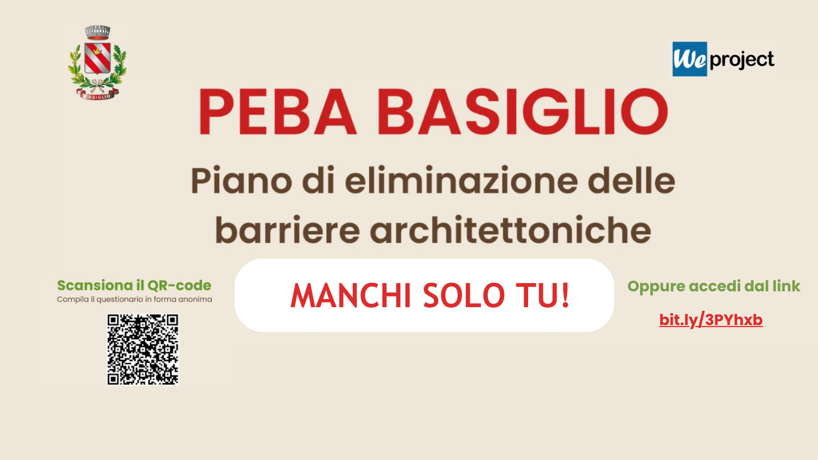 Facciamo appello alla vostra esperienza diretta o indiretta con la disabilità e al senso civico di tutti e chiediamo di rispondere a un semplice questionario al link bit.ly/3PYhxbP.