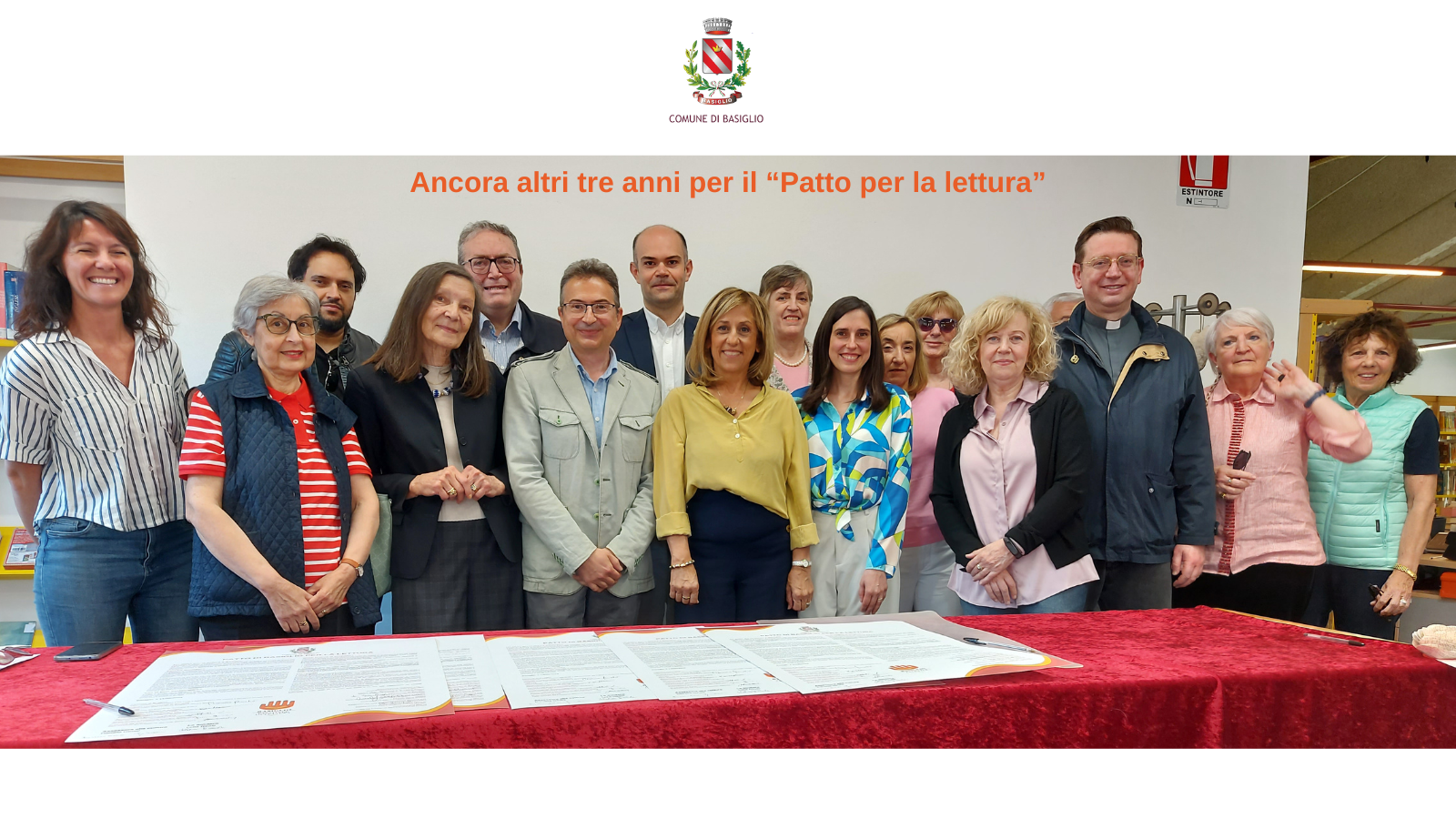 Il “patto per la lettura” è uno strumento delle politiche di promozione del libro e della lettura che il Comune di Basiglio – riconosciuto come “Città che legge” dal Centro per il libro e la lettura – propone alle istituzioni pubbliche del paese, alle associazioni culturali, a tutti i soggetti privati, che riconoscono nella lettura una risorsa strategica su cui investire e un valore sociale da sostenere attraverso un’azione coordinata e congiunta a livello locale.