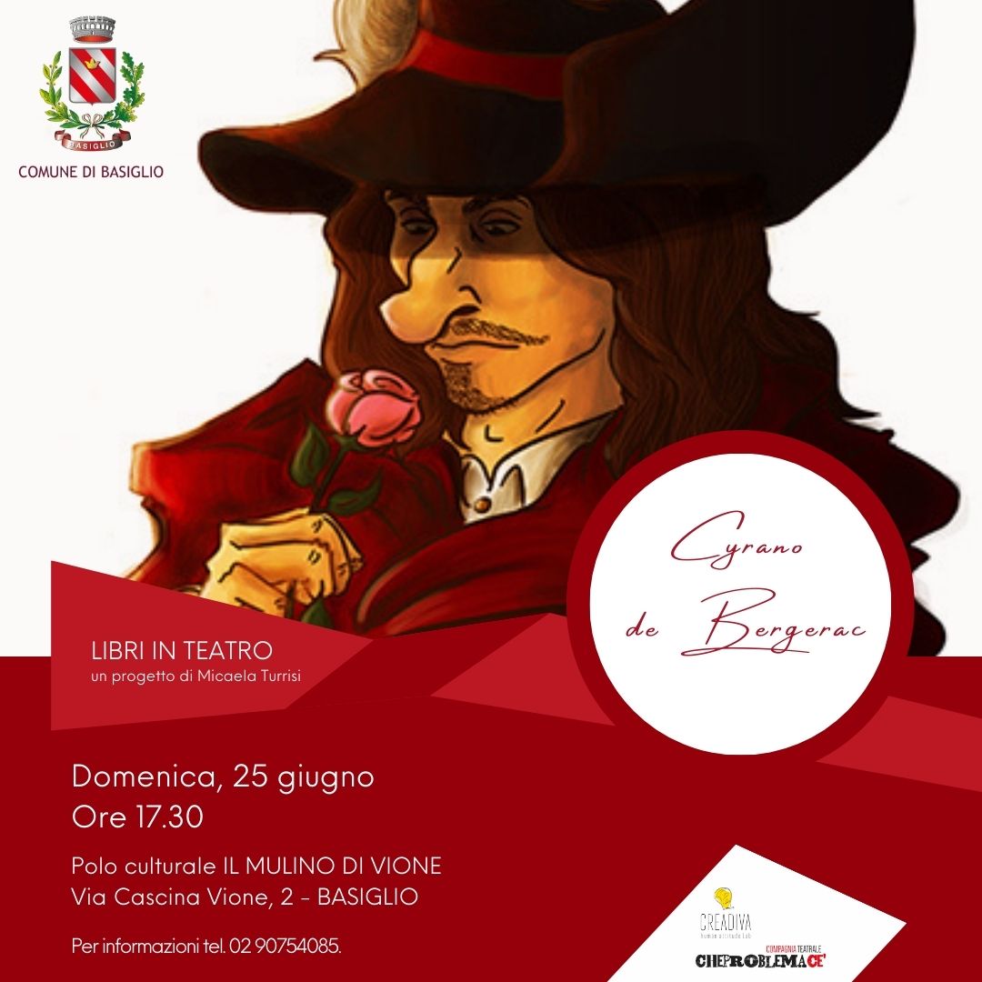 Domenica 25 giugno, alle ore 17.30, presso il Polo Culturale IL MULINO DI VIONE si terrà la lettura teatrale della celebre commedia scritta dal poeta drammatico francese Edmond Rostand e ispirata alla figura storica di Savinien Cyrano de Bergerac.