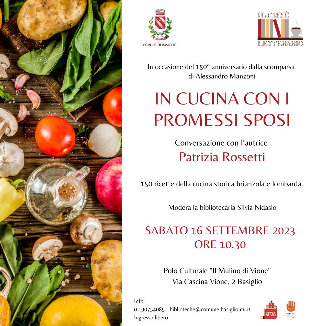 Nell'ambito della rassegna "Il Caffč Letterario", Sabato 16 settembre alle ore 10.30 presso il Polo Culturale "Il Mulino di Vione" sarą presente l'autrice Patrizia Rossetti per parlarci del suo libro "In cucina con i promessi sposi".