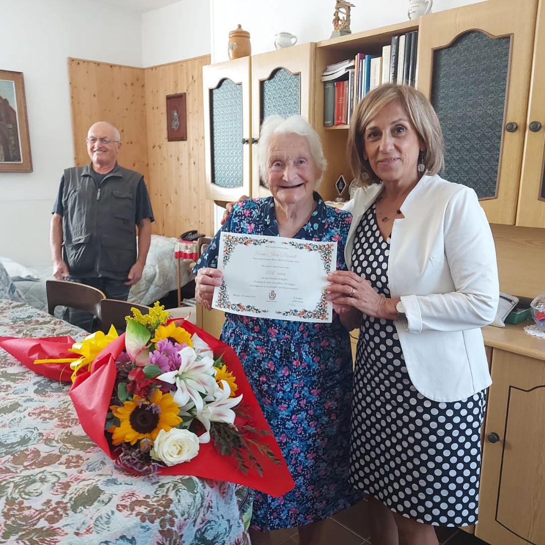 Il sindaco Lidia Reale, a nome di tutta l’amministrazione comunale, ha fatto visita alla signora Anna Ines per consegnarle una pergamena ricordo, un mazzo di fiori e celebrare insieme il suo straordinario traguardo.