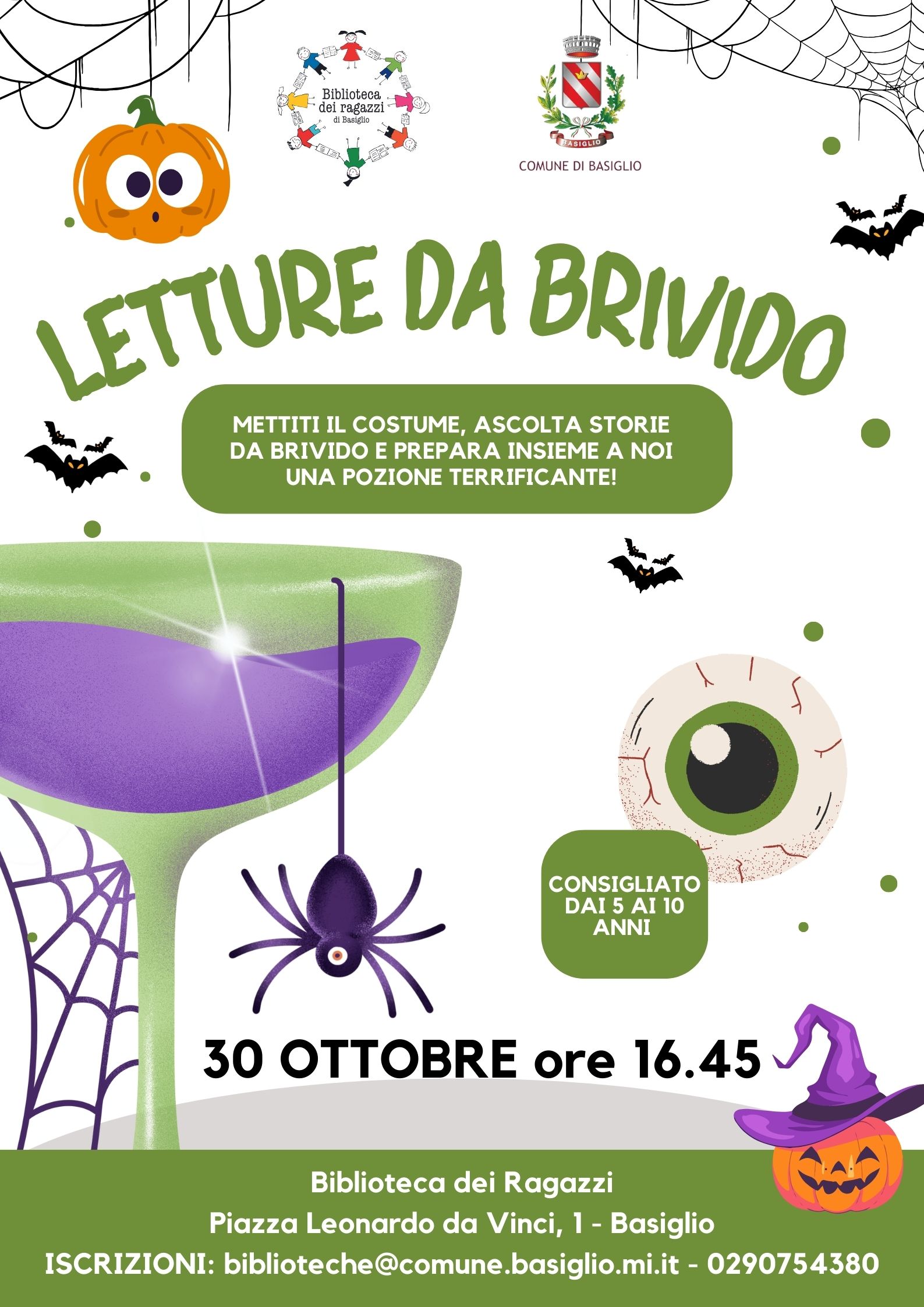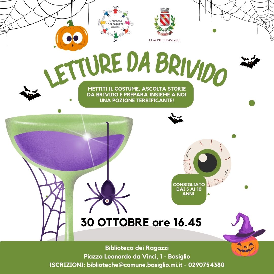 Lunedì 30 ottobre alle 16.45, indossate il vostro costume più spaventoso e venite ad ascoltare storie da brivido. Prepareremo insieme una pozione terrificante.