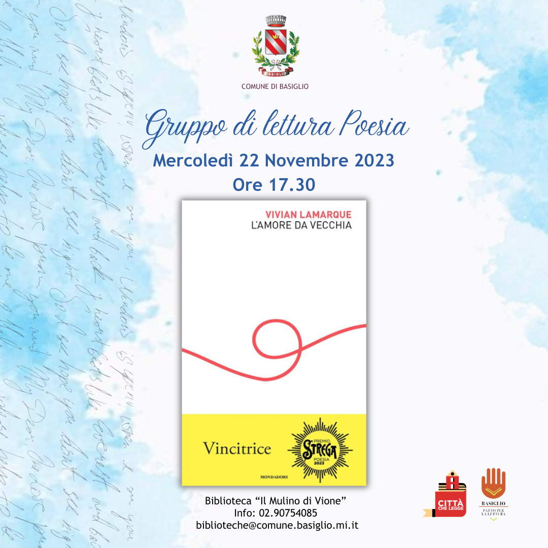 Mercoledì 22 novembre alle ore 17.30 presso la Biblioteca "Il Mulino di Vione"si terrà il primo incontro del nuovo gruppo di lettura dedicato alla poesia contemporanea.