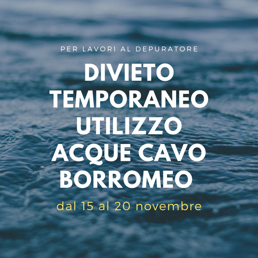 Per lavori di manutenzione da parte di CAP HOLDING Spa, dal 15 al 20 novembre č vietato il prelievo e l'utilizzo delle acque del Cavo Borromemeo da parte di cittadini, agricoltori, coltivatori, allevatori del Comune di Basiglio e il divieto di pesca.