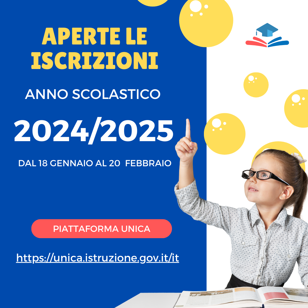 Al via da oggi, giovedì 18 gennaio, e fino alle ore 20 del 10 febbraio, le iscrizioni per il prossimo anno scolastico 2024/2025. Anche quest’anno le procedure si svolgeranno online utilizzando la Piattaforma Unica (https://unica.istruzione.gov.it/it).