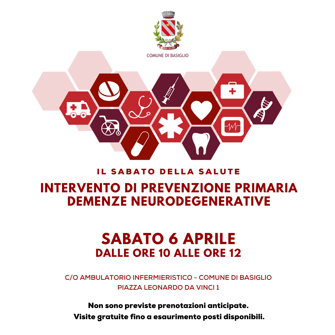 Sabato 6 aprile nell'ambulatorio infermieristico del Comune di Basiglio, dalle ore 10 alle ore 12, torna il “Sabato della Salute”, l’iniziativa di screening promossa dell’amministrazione comunale per favorire la prevenzione, aumentare la consapevolezza sui temi della salute e migliorare così il benessere della popolazione.