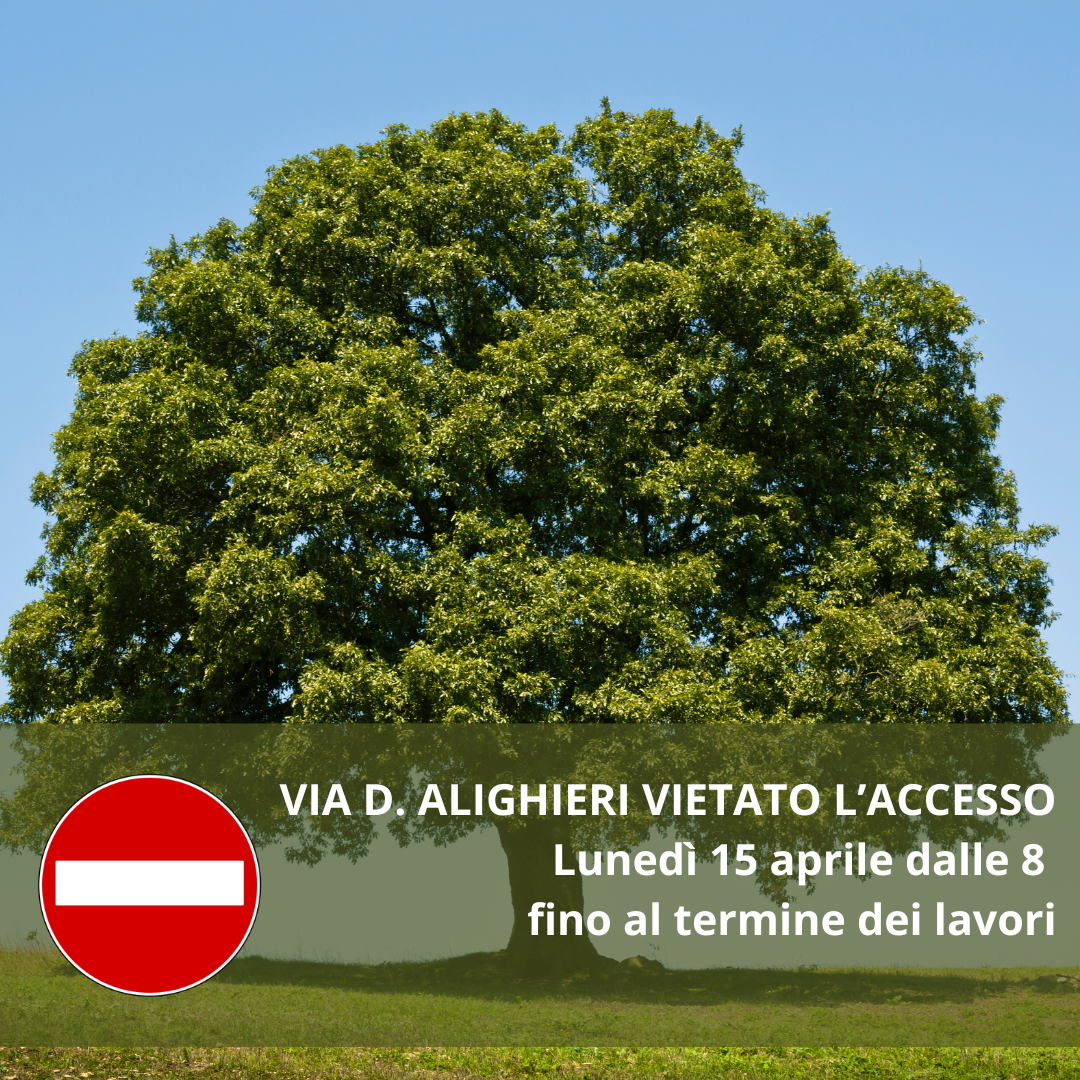 In seguito a una verifica di trazione che ha rilevato la poca stabilità e la conseguente pericolosità dell’albero, si è reso necessario l’abbattimento di una quercia in via D. Alighieri.
