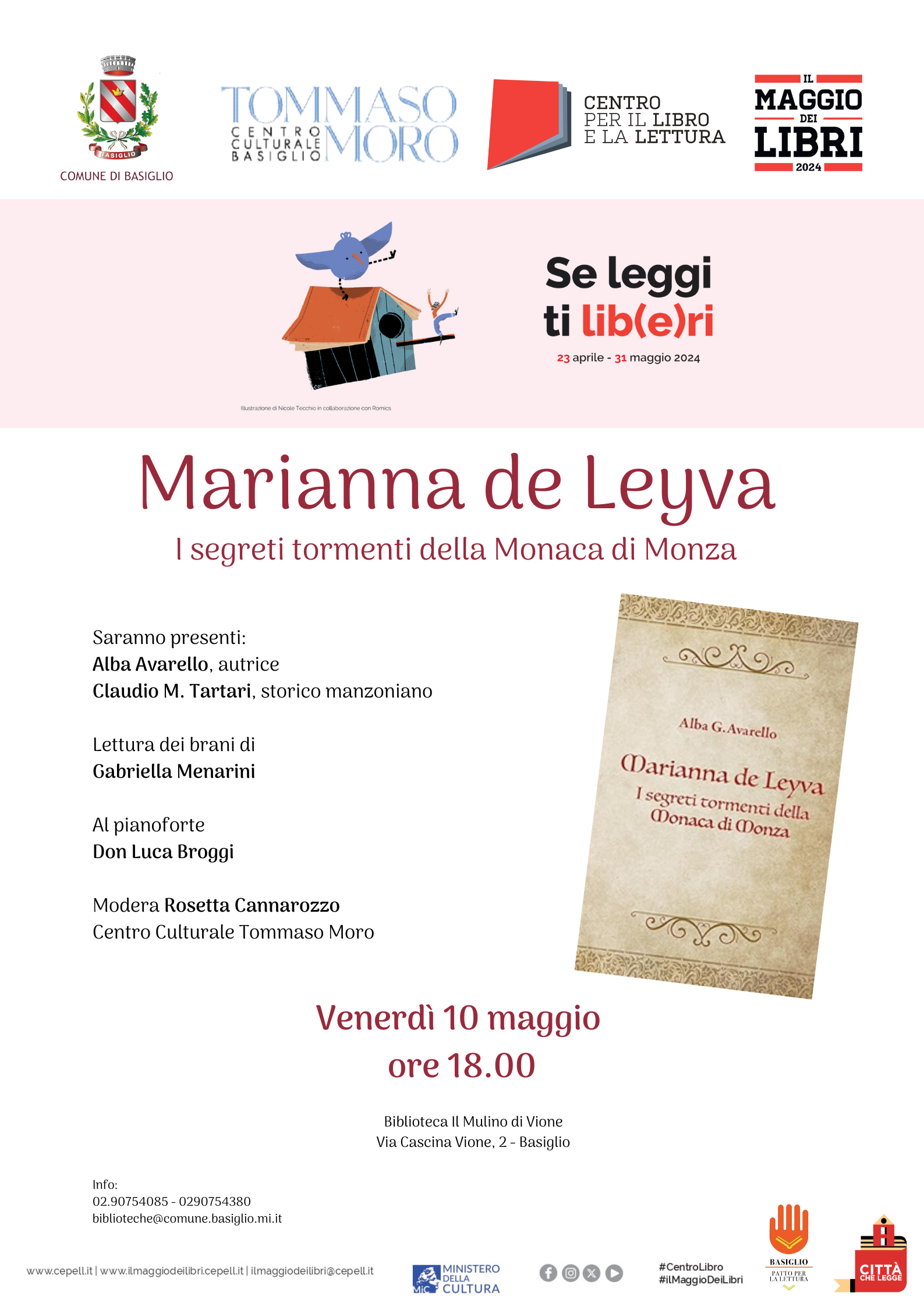 Un incontro imperdibile, a cura del Centro Culturale Tommaso Moro, con l’autrice Alba Avarello che presenta il suo libro "Marianna de Leyva. I segreti tormenti della Monaca di Monza".
