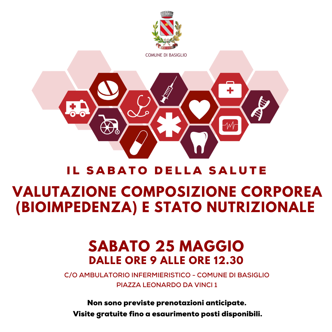 È dedicato alla valutazione della composizione corporea e allo stato nutrizionale il prossimo appuntamento del “Sabato della salute”, che si terrà sabato 25 maggio dalle ore 9 alle ore 12.30 nel nuovo ambulatorio infermieristico in piazza Da Vinci.