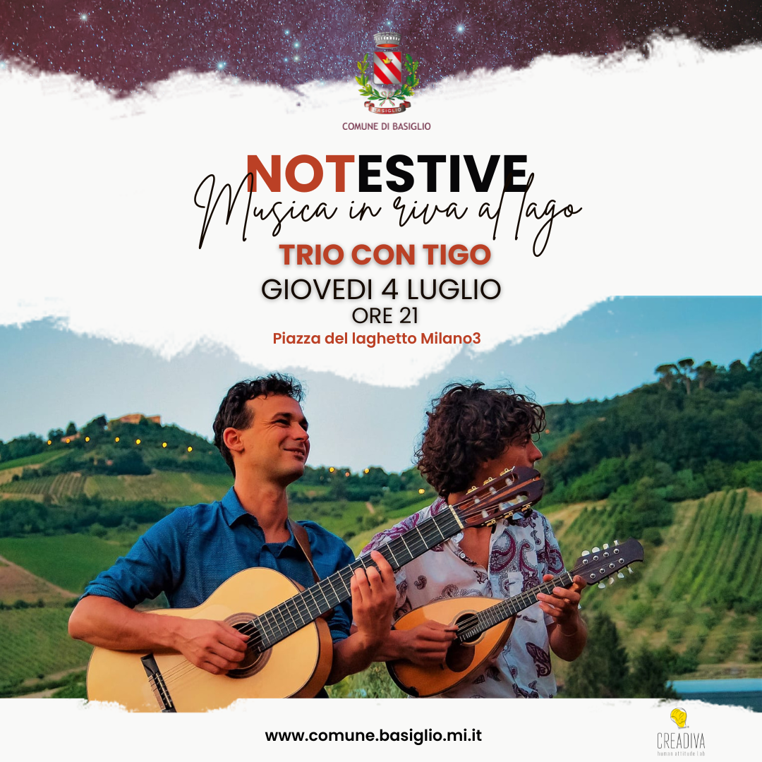 Giovedì 4 luglio alle 21 è ancora MUSICA IN RIVA AL LAGO con il Trio con Tigo.