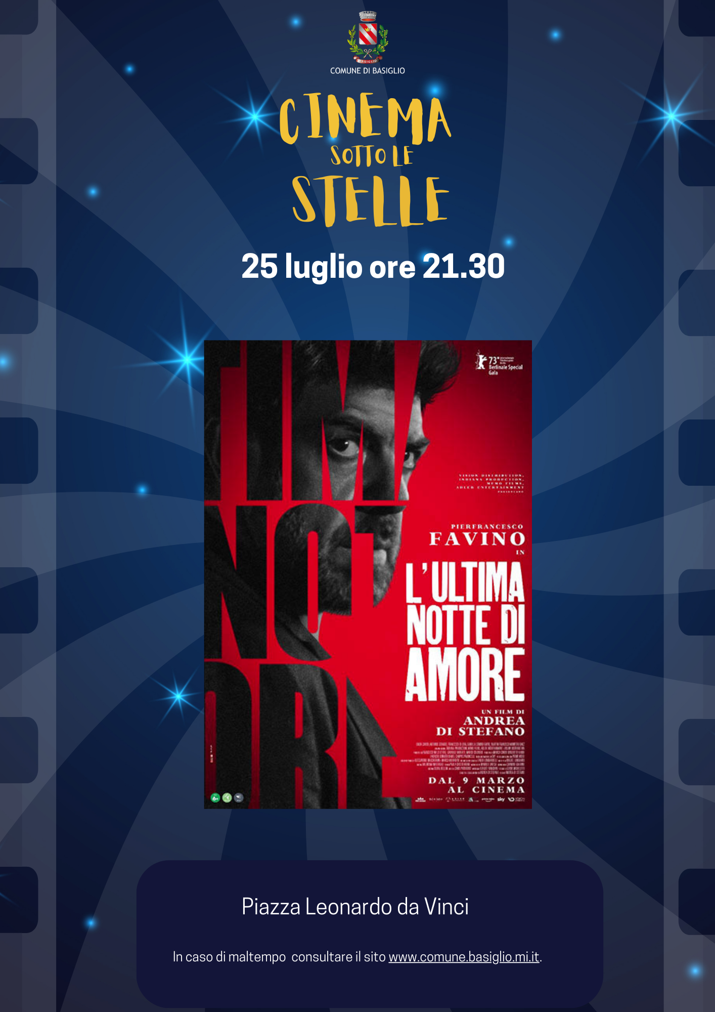 In caso di maltempo il film verrà proiettato in aula Consigliare.