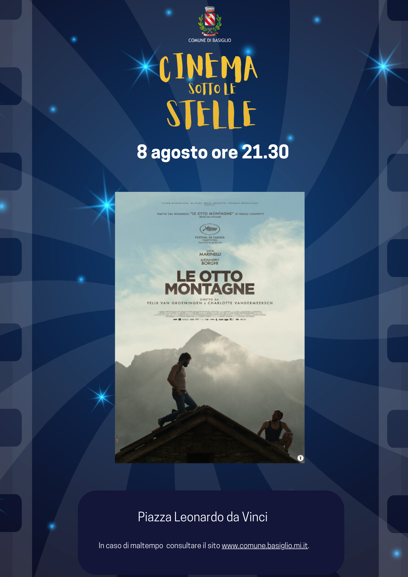 In caso di maltempo il film verrà proiettato in aula Consigliare.