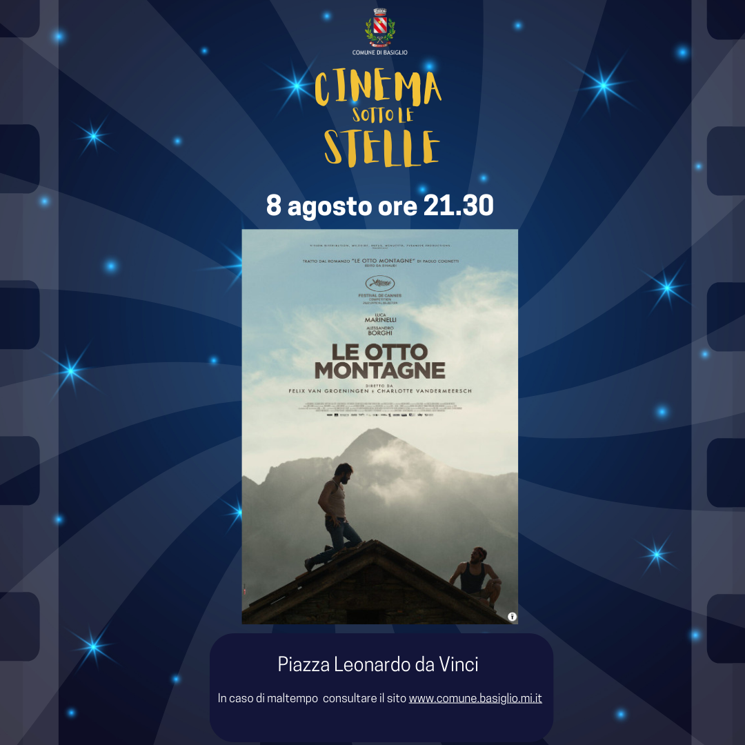 Giovedì 8 agosto alle ore 21.30 in piazza Leonardo da Vinci vivremo insieme una storia di amicizia, di padri e di figli e delle scelte che facciamo nella vita che ci viene data, sullo sfondo delle montagne che dobbiamo scalare fisicamente e psicologicamente.