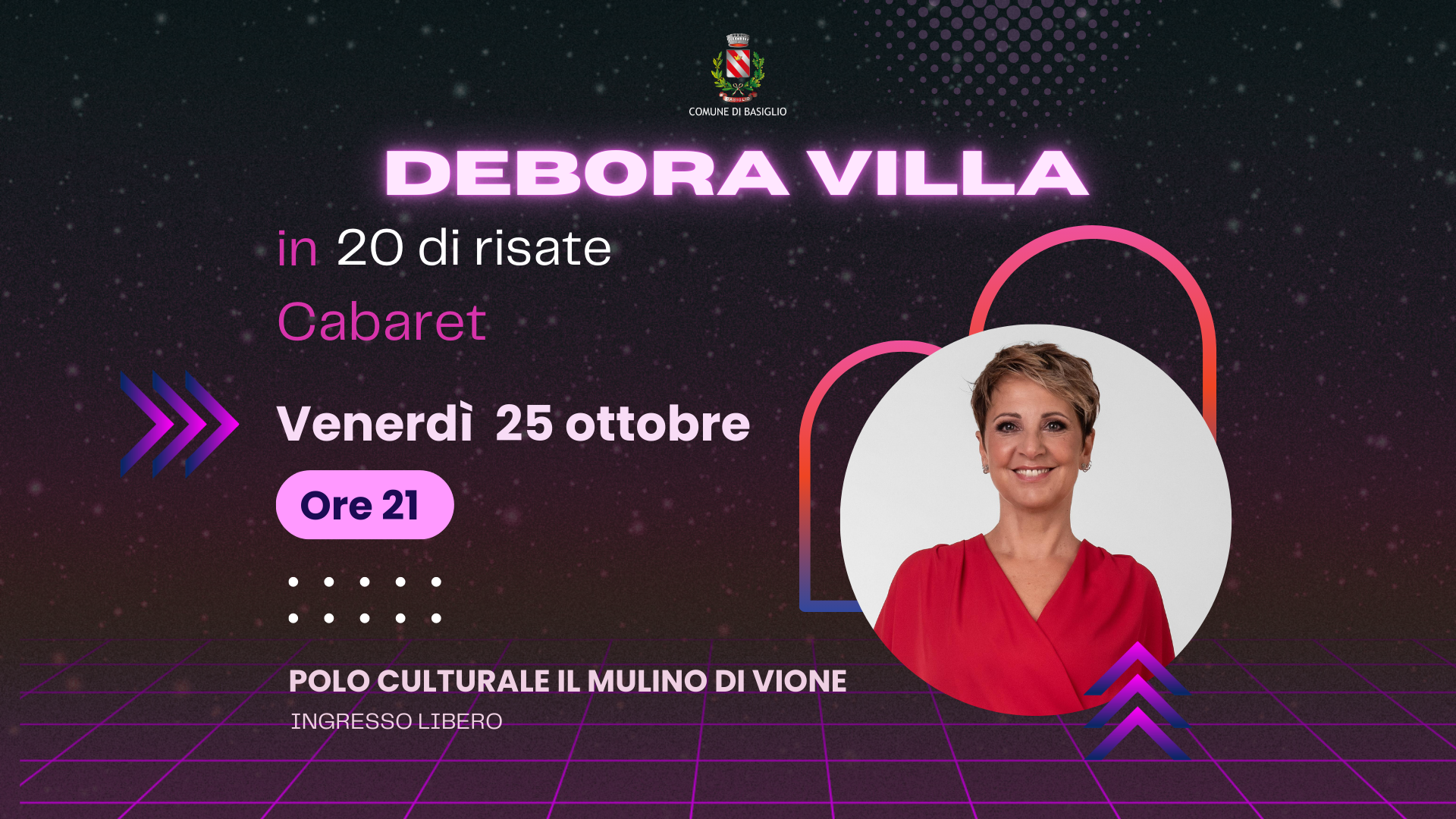 Debora Villa sarà a Basiglio con il suo spettacolo “20 di risate”.