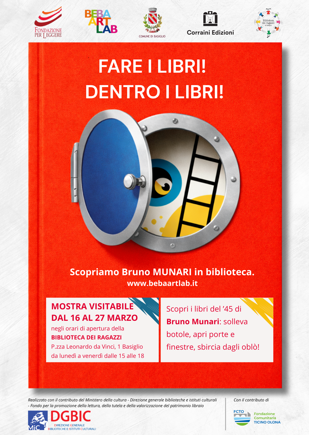L’iniziativa è promossa dalla Fondazione per Leggere, in collaborazione con Beba Restelli, Cristina Bortolozzo (operatrice certificata del Metodo Bruno Munari®) e Corraini Edizioni, nell’ambito del progetto “Fare libri! Dentro i libri! – Scopriamo Bruno Munari in biblioteca con il laboratorio di Beba Restelli”.